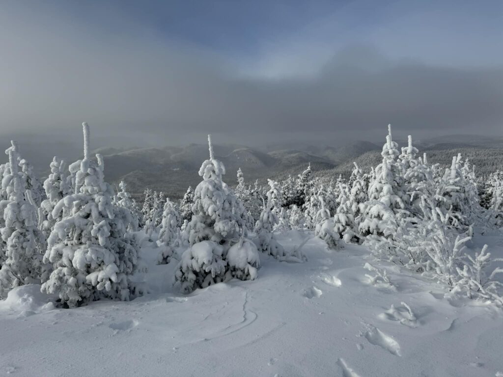 Nous avions eu la brillante idée de réserver notre excursion aux Monts-Valin assez tôt. Nous mesurions notre privilège, il y avait tellement de neige, de la magnifique neige partout! Ailleurs au Québec, celle-ci n’était pas au rendez-vous…