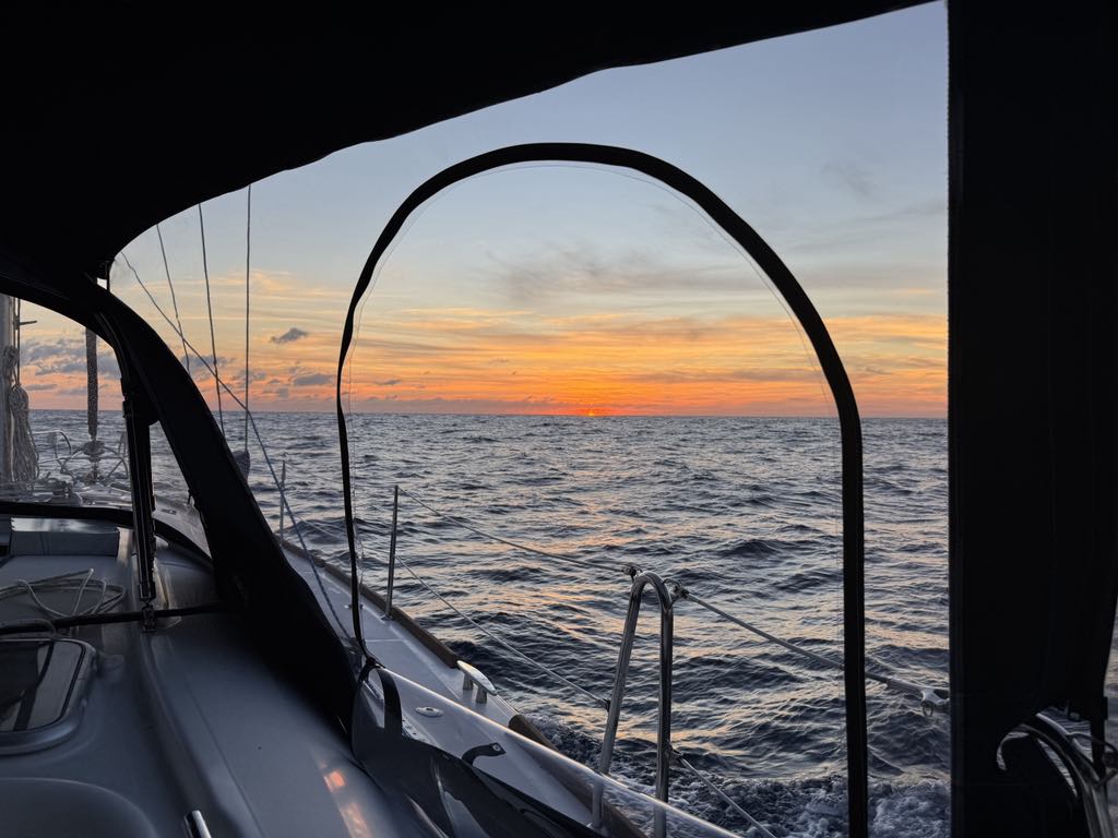 Les premières journées se sont passées sans accroc. Mer magnifique, fabuleux couchers de soleil, le plaisir de sortir du quotidien. Mais justement, sortir du quotidien signifie quitter ses repères, ce qui vient avec quelques défis et imprévus!